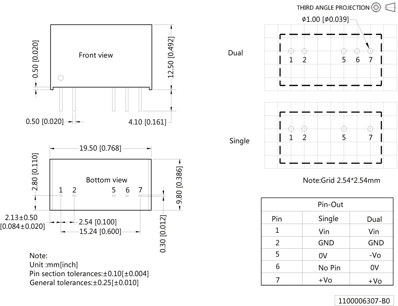 Note: *Ripple and noise tested with “parallel cable” method, please see DC-DC Converter Application Notes for specific operation methods.**Supply voltage must be discontinued at the end of short circuit duration which less than 3s. |