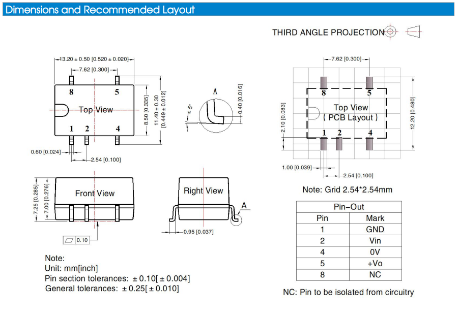 1W isolated DC-DC converter Fixed input voltage, unregulated single output